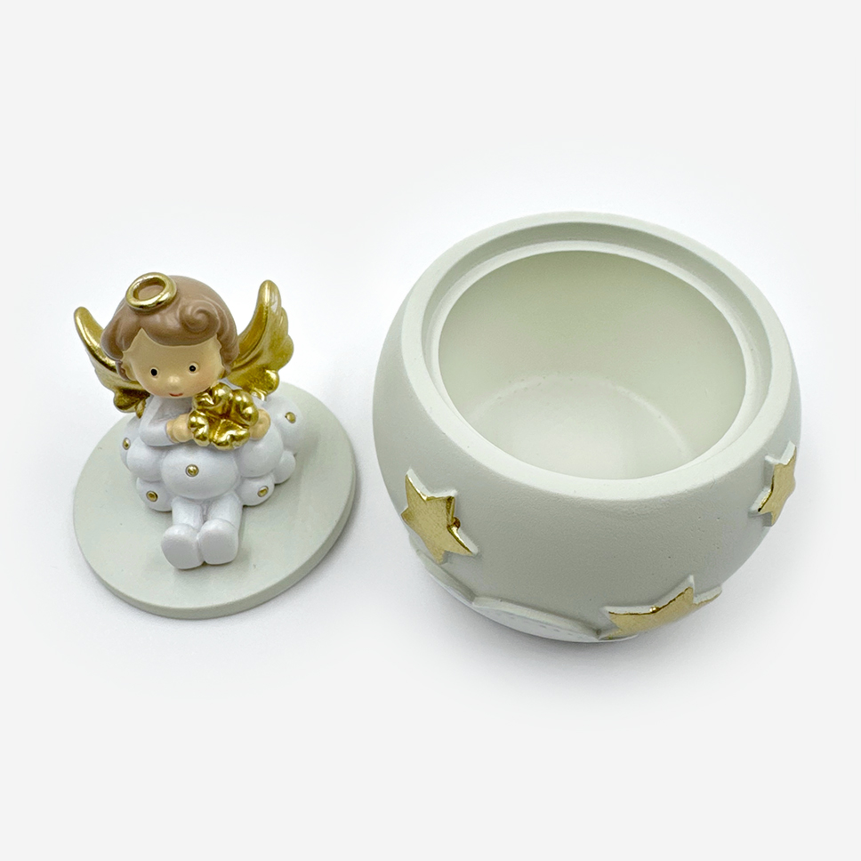 Шкатулка «Ангелочек» из полистоуна — изящное изделие для хранения дорогих сердцу мелочей. Материал (искусственный камень) позволяет точно передать нежные черты ангела. Может использоваться как копилка или просто украшение интерьера. Трогательный образ небесного покровителя напоминает о чистоте и добре. Прекрасный подарок для девочки, крестницы или на день Ангела.