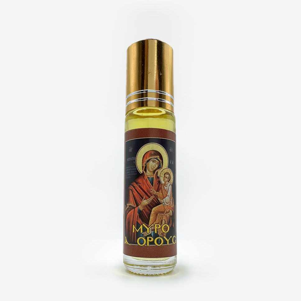 Благовоние Миро «Богородица Скоропослушница» — аромат, посвященный образу Пресвятой Богородицы, известному быстрой помощью по молитвам. Создан на основе натуральных масел с добавлением освященного елея. Мягкий, смолистый запах ладана с цветочно-медовыми нотами успокаивает душу и настраивает на сердечную молитву. Используется дома, перед иконами. Флакон с образом Скоропослушницы.