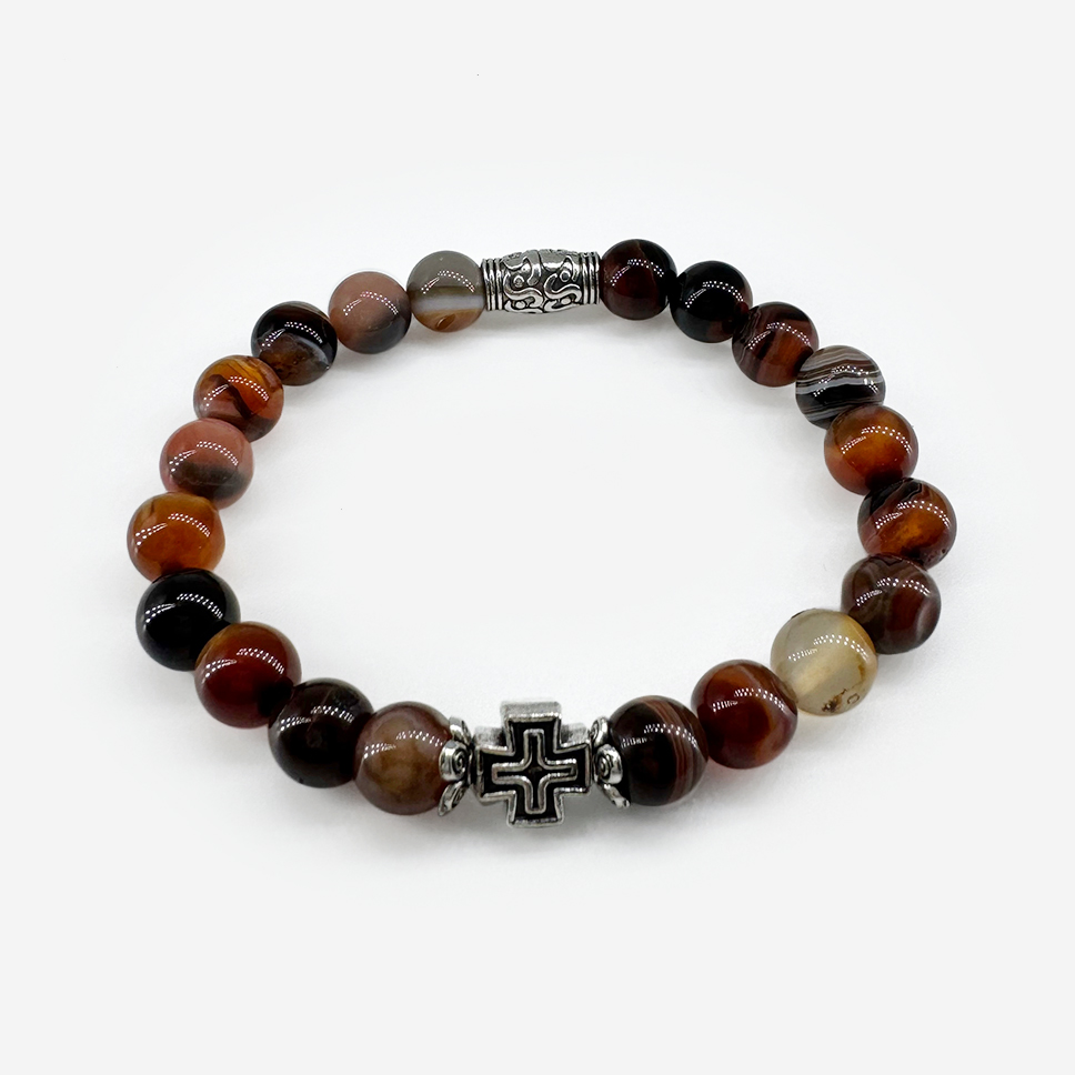Православный браслет «Агат темно-коричневый» — благородное украшение из натурального камня глубокого землистого оттенка. Темно-коричневый цвет в православной традиции символизирует смирение, покаяние и связь с землей, из которой создан человек и в которую возвратится. Агат издревле почитался как камень, оберегающий от зла и дарящий душевное равновесие. Натуральный камень, эластичная нить, универсальный размер.