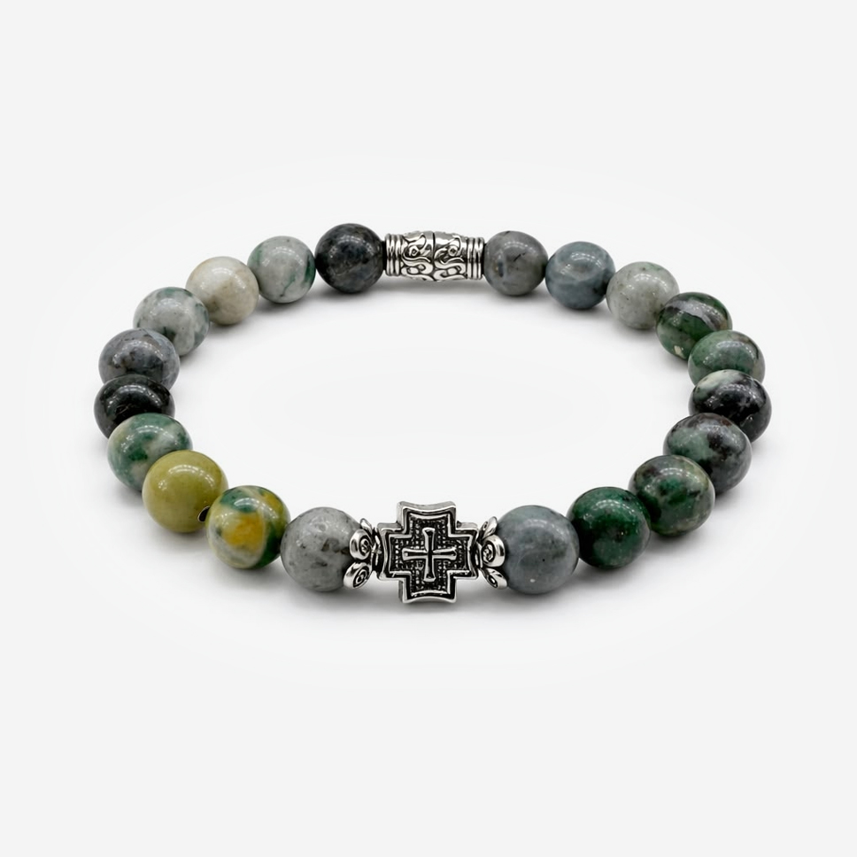 Православный браслет «Азурит» — украшение из натурального камня глубокого синего цвета, напоминающего о ночном небе над Вифлеемом. Синий — традиционный цвет Богородицы, символ чистоты, небесной тайны и молитвенного созерцания. Азурит издревле ценился художниками за свой «небесный» пигмент. Натуральный камень, эластичная нить, универсальный размер.