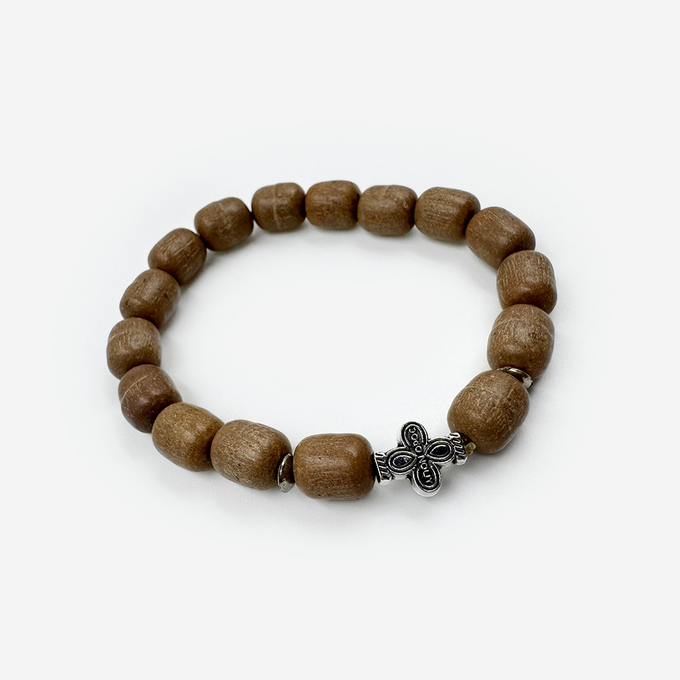 Браслет из ладанного дерева «Светло-коричневый» — теплое, природное украшение из натуральной древесины. Ладанное дерево обладает тонким, приятным ароматом и издавна почитается на Святой Горе Афон. Естественный светло-коричневый оттенок подчеркивает натуральность материала. Браслет помогает сосредоточиться на молитве, успокаивает ум и дарит душевный покой. Эластичная нить, универсальный размер. Прекрасный подарок.