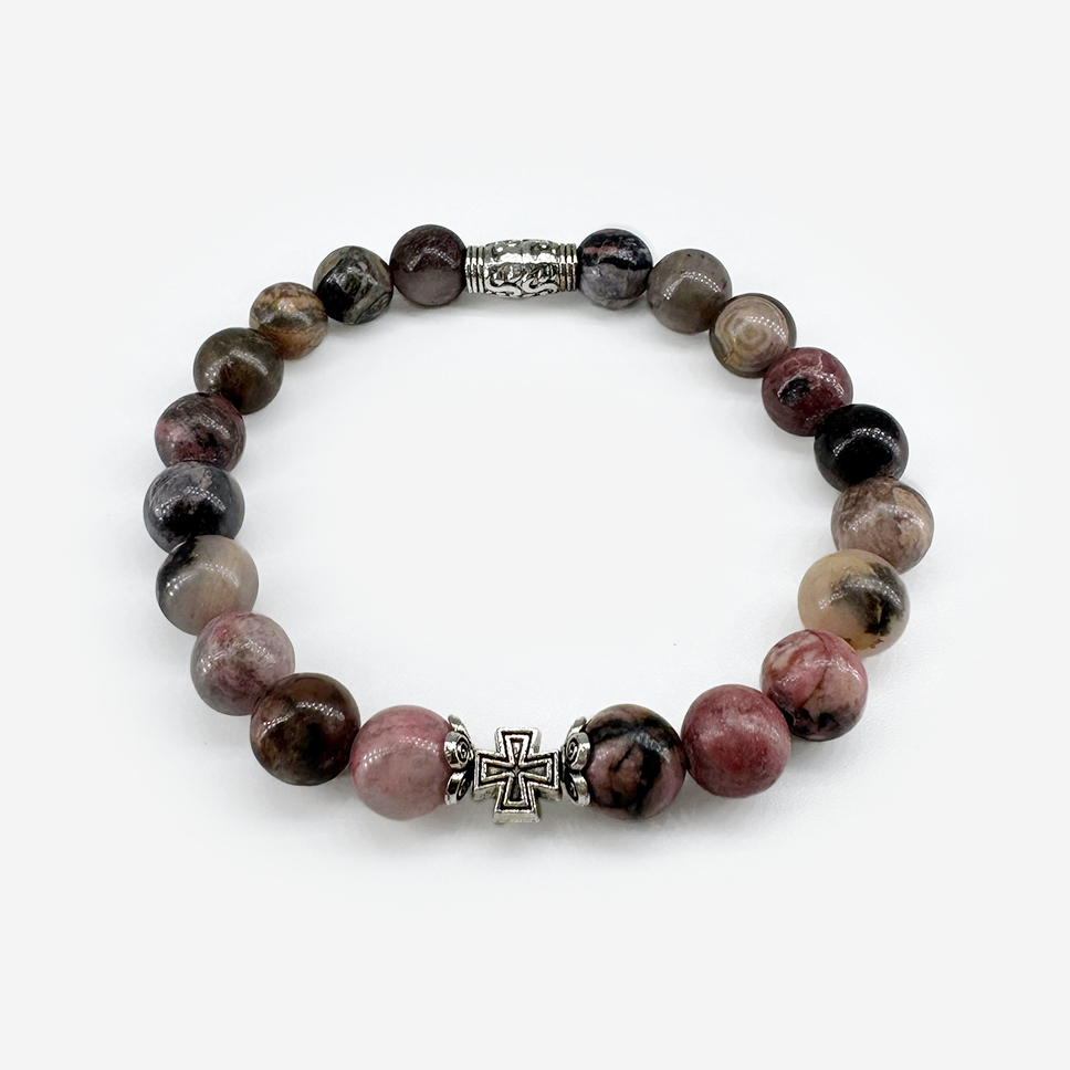 Православный браслет «Родонит» — украшение из натурального камня розового цвета с черными прожилками. Розовый цвет традиционно считается символом любви, чистоты и материнства, напоминая о заботе Пресвятой Богородицы. Родонит дарит душевное тепло, успокаивает сердце и пробуждает добрые чувства. Натуральный камень, эластичная нить, универсальный размер.