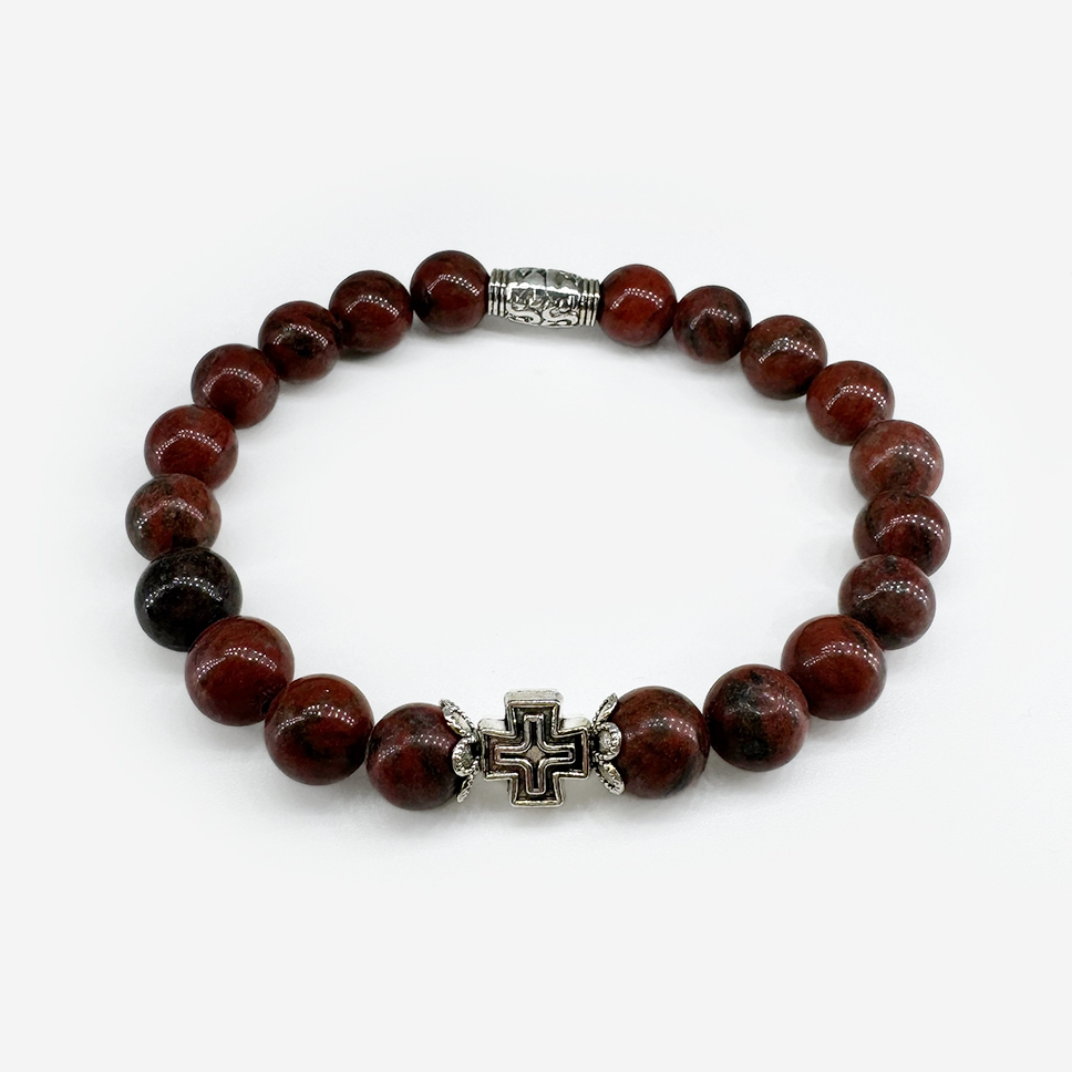 Православный браслет «Яшма бордовая» — украшение из натурального камня с глубоким, благородным оттенком. Яшма издревле почиталась на Руси как символ стойкости веры и связи с землей, ее использовали для украшения храмов и окладов икон. Темно-красный цвет напоминает о мученическом подвиге и жертвенной любви. Натуральный камень, эластичная нить, универсальный размер.