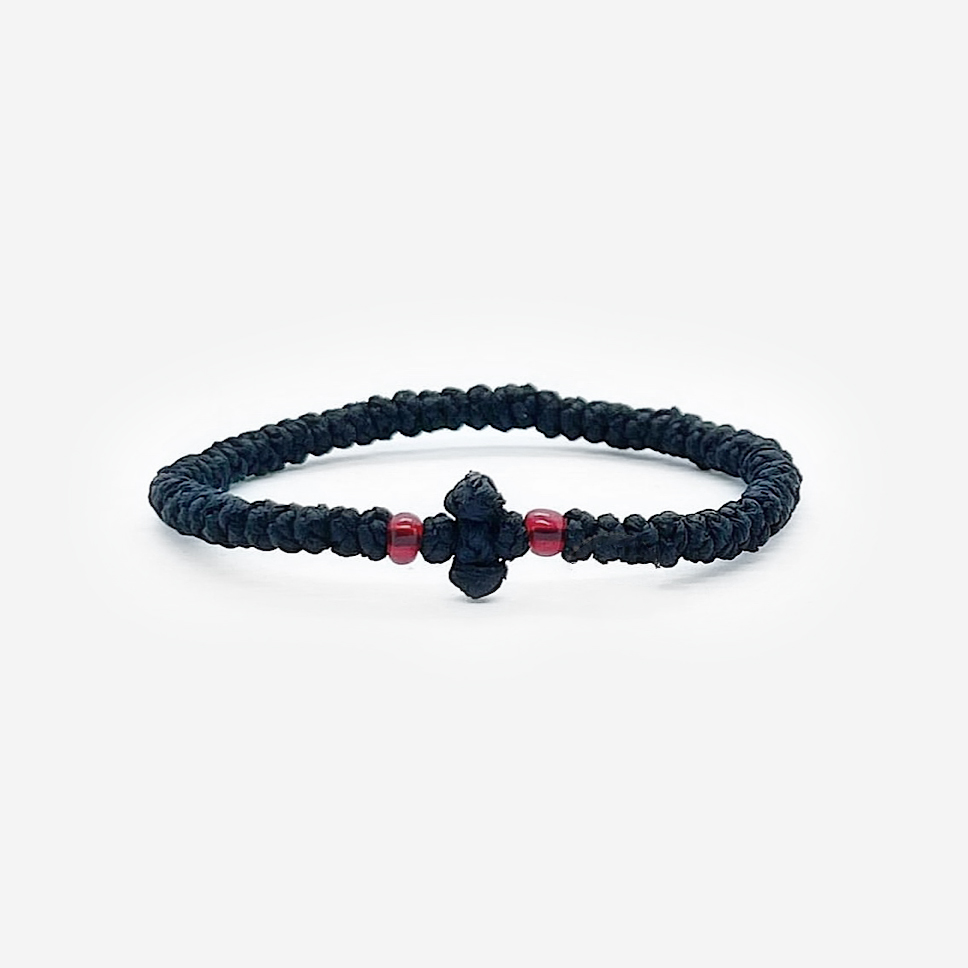 Комбоскини плетутся Монахами на Афоне — земле, где ни на минуту не прекращается молитва.Плетутся они из шерстяной вощеной нити, так как овечья шерсть напоминает о Христе «Добром Пастыре», а каждый узелок состоящий из 9 пересечений нитей крестом — о девяти Ангельских чинах. В процессе плетения Монах читает молитву о том, чтобы носивший его человек обрел в своей душе истиную веру, а комбоскини защищал его. Размер комбоскини универсален. Чтобы надеть его — надо растянуть узелки, собрать кончики пальцев вместе и накатывающими движениями надеть браслет на руку. Так как нить вощеная — комбоскини примет форму Вашего запястья в течении первых суток. Цвет комбоскини не несет смысловой нагрузки — выбирайте тот, то по душе.