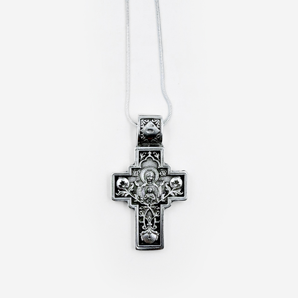 Крест нательный «Спаситель и Богородица» на цепочке