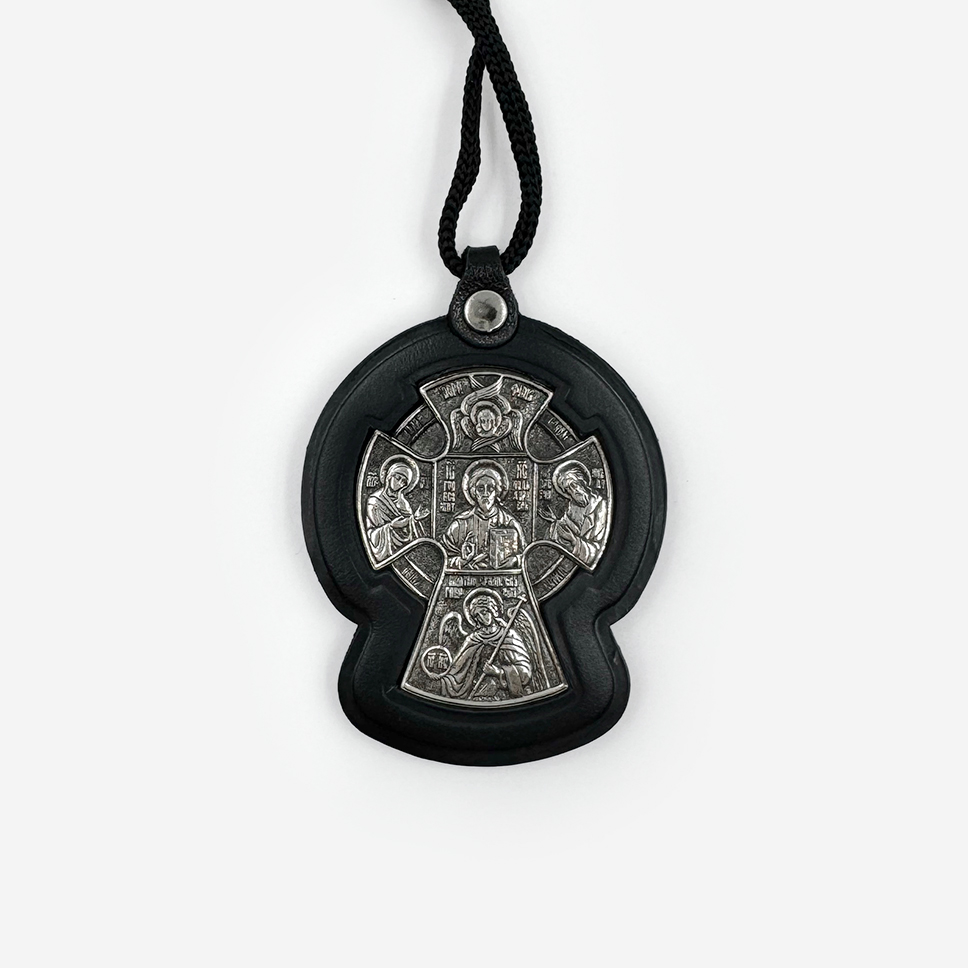 Подвеска автомобильная «Новгородский крест» из натуральной кожи с серебрением